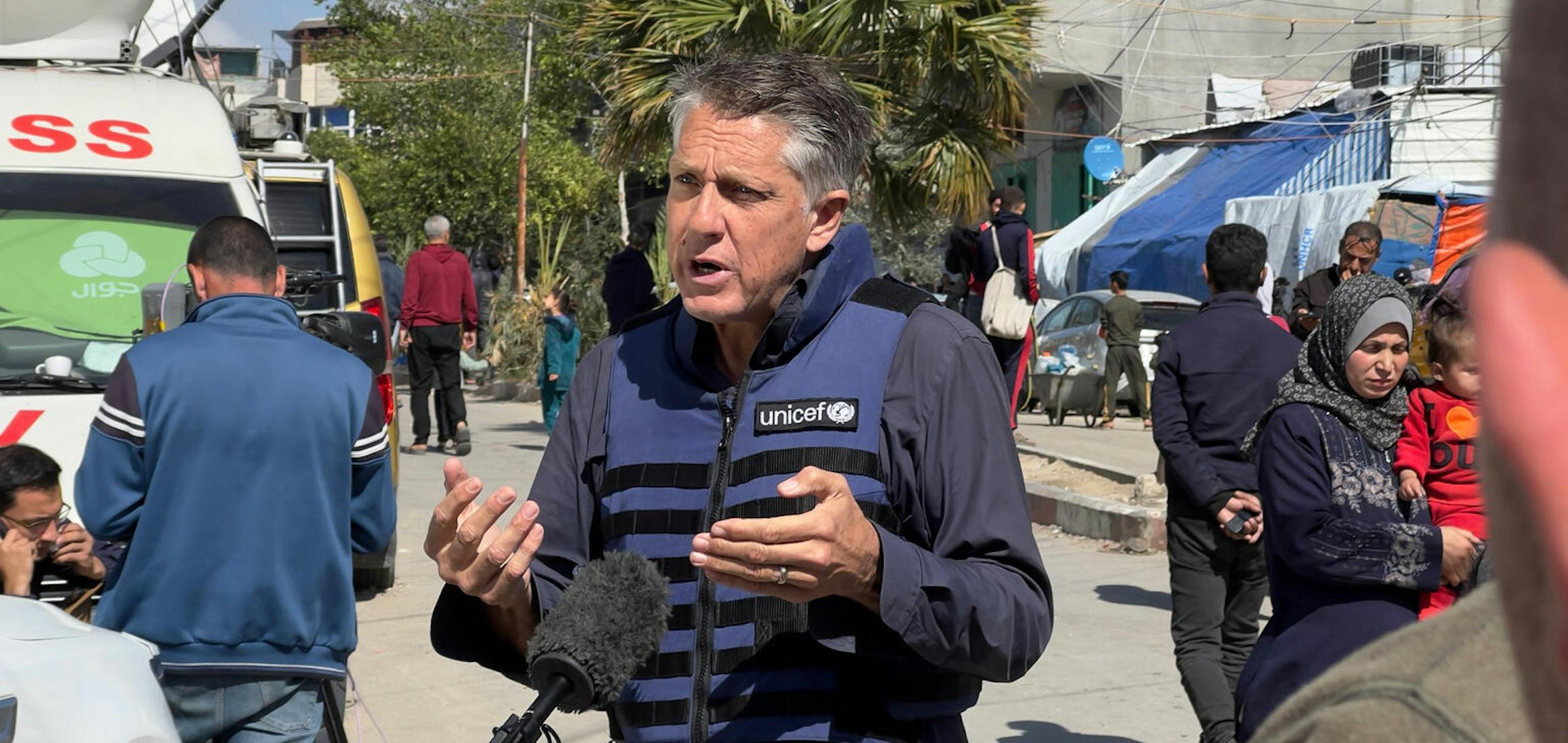 James Elder, talsmaður UNICEF, talar frá Gaza-borg