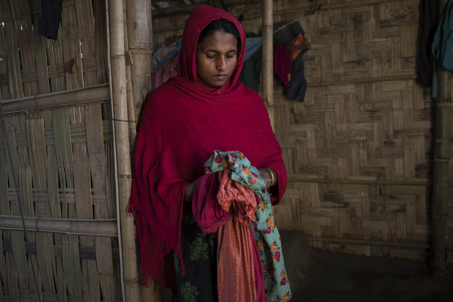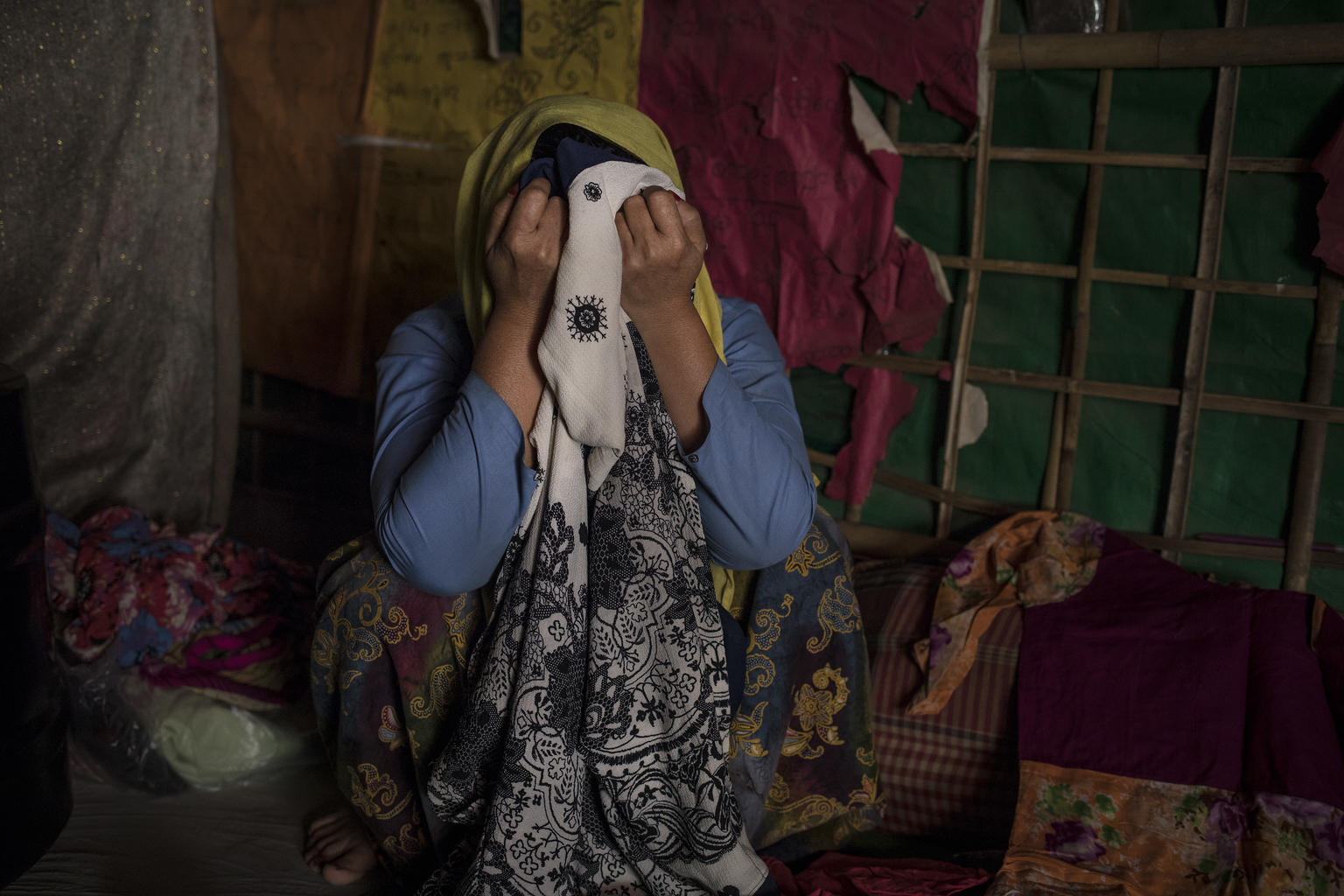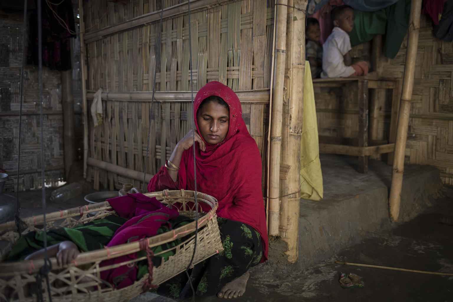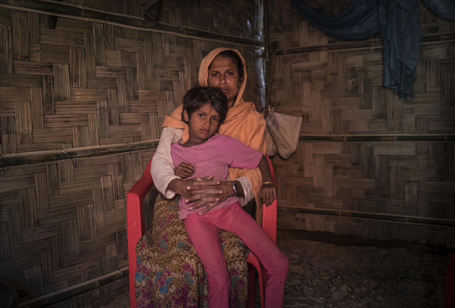 Hin þrítuga Anjuma Bengum er á myndinni hér fyrir ofan með fimm ára dóttur sinni Lölu Bibi á heimili þeirra í Balukhali-búðunum í Cox‘s Bazar. Asma, níu ára dóttir Anjumu, hvarf sporlaust þegar hún var á leið á markaðinn að sækja matvöru.