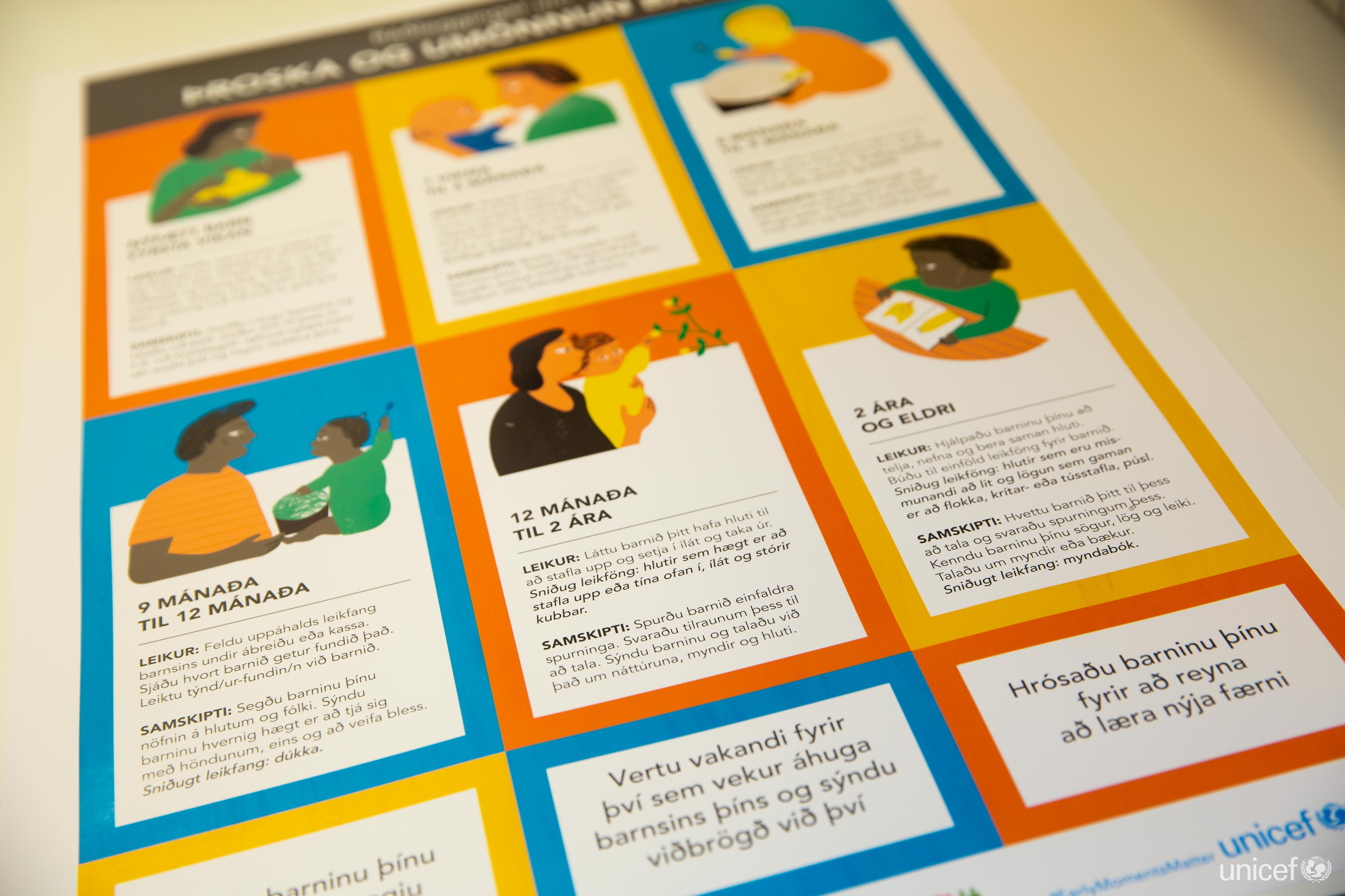 UNICEF á Íslandi hefur tekið höndum saman með Embætti landlæknis og Heilsugæslu höfuðborgarsvæðisins við útgáfu á veggspjaldi með ráðum um þroska og umönnun barna. Útgáfan er hluti af alþjóðlegu átaki UNICEF, #EarlyMomentsMatter.