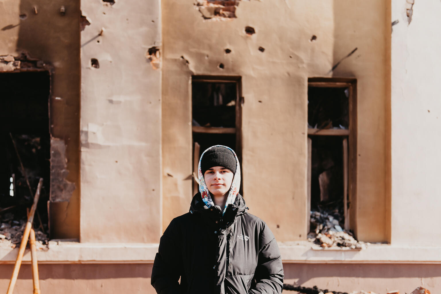 Í Kharkiv, í norðaustur Úkraínu, stendur hinn 14 ára Yaroslav fyrir framan það sem eftir er af skólanum sínum en hann var eyðilagður í skotárás. „Skólinn okkar var brenndur,“ segir hann. Frá því að stríðið hófst í febrúar hafa hundruðir skóla víðsvegar um landið orðið fyrir barðinu á stórskotaliðum, loftárásum og öðrum sprengivopnum, á meðan aðrir eru notaðir sem upplýsingamiðstöðvar, skýli og birgðastöðvar. Að minnsta kosti einn af hverjum sex skólum sem UNICEF styður í austurhluta Úkraínu hefur verið skemmdur eða eyðilagður síðan stríðið hófst, þar á meðal skóli 36 - eini „öruggi skólinn“ í Mariupol – sem undirstrikar hin stórkostlegu áhrif sem átökin hafa á líf og framtíð barna.