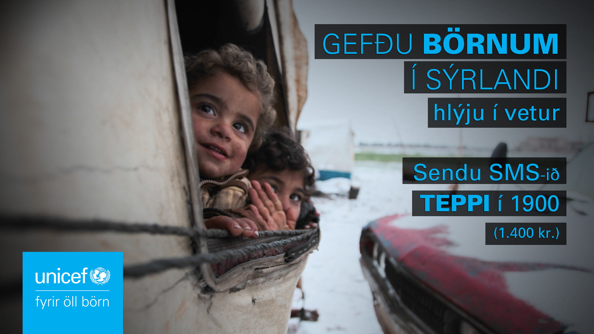 Við minnum á áframhaldandi neyðarsöfnun UNICEF á Íslandi fyrir börn í Sýrlandi. Þú getur gert þitt til að fæða og klæða börnin í tjöldunum köldu. Sendu SMS-ið TEPPI í númerið 1900 (1.400 kr.)
